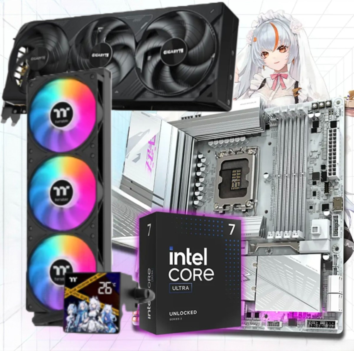 • CPU+主板:Intel酷睿Ultra 7 265K(8P+12E共20核,睿频超高),必须配Z890芯片主板才能发挥全部实力,打游戏、直播、录屏三不误,主板支持超频,可玩性拉满;