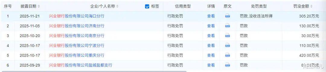 当监管机构在2025年前11个月对兴业银行累计罚没金额近2500万元且百万级罚单达9张时,这家总资产超10万亿的股份制银行或已暴露出合规失序。