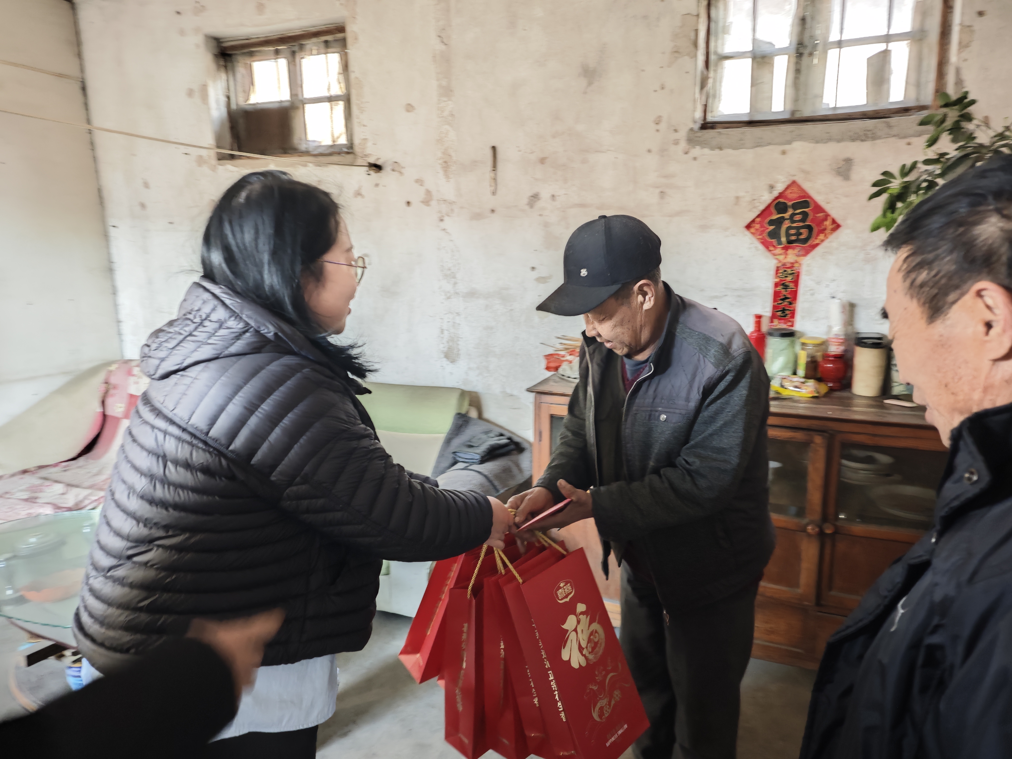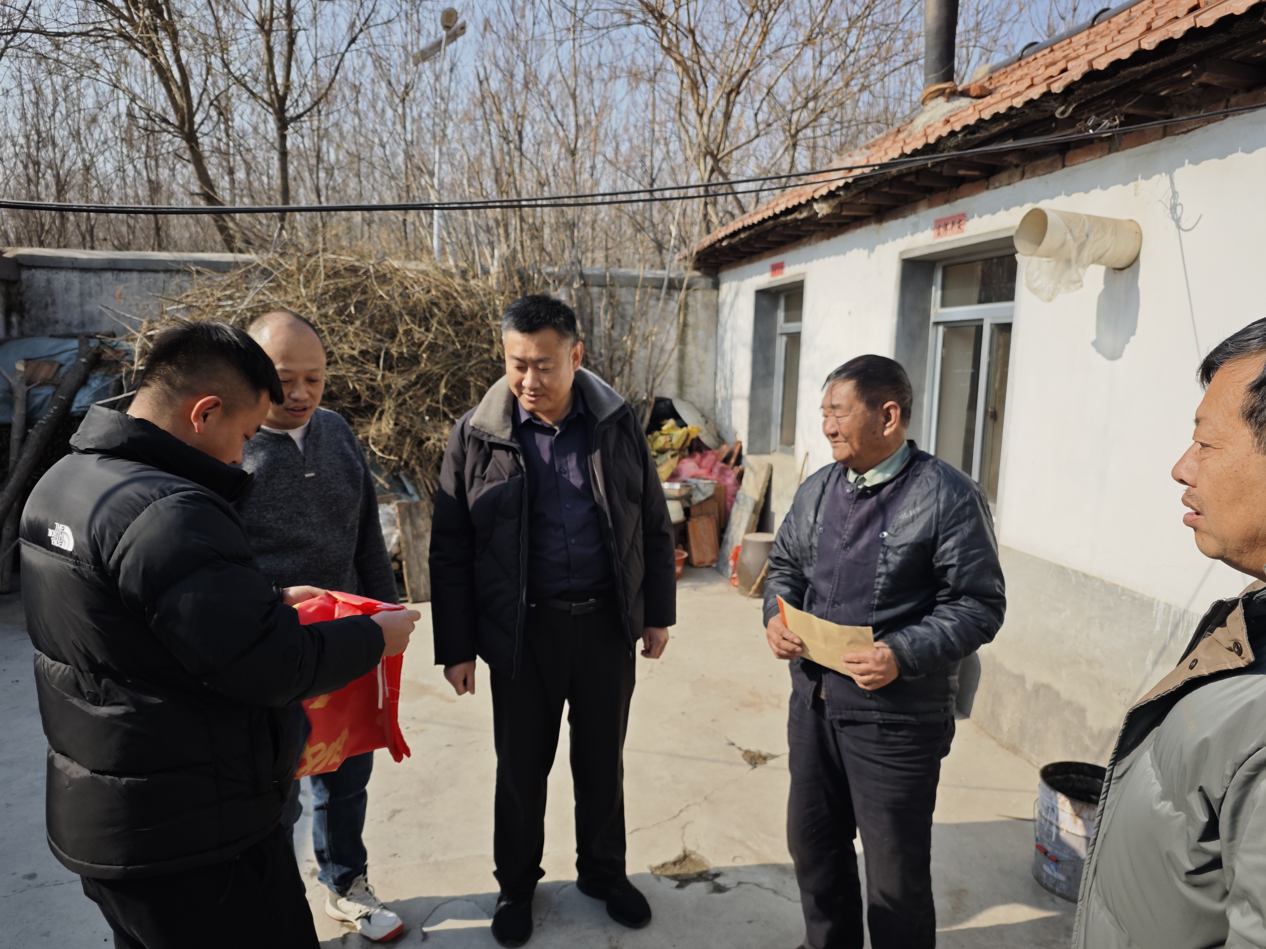 新春将至,暖意先行。2026年2月11日,位于平度市南村镇的青岛天祥食品集团、青岛青承酒店服务管理有限公司两家爱心企业,在镇党建办公室工作人员的陪同下,开展困难党员新春走访慰问活动,先后走进柏家寨、钟楼埠、榜戈庄、张家下坡四个自然村,为4位困难党员送去慰问金、新春春联及诚挚的节日祝福,让老党员们在寒冬中感受到浓浓的关怀与温暖。