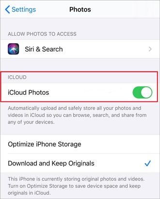 打开iPhone的“设置”>“Apple ID”>“iCloud”>“照片”>打开“iCloud照片”,即可将这些照片同步到iCloud。