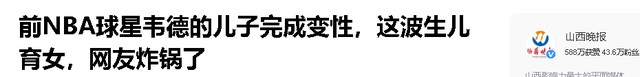 信息来源:山西晚报——前NBA球星韦德的儿子完成变性,这波生儿育女,网友炸锅了2023-02-27