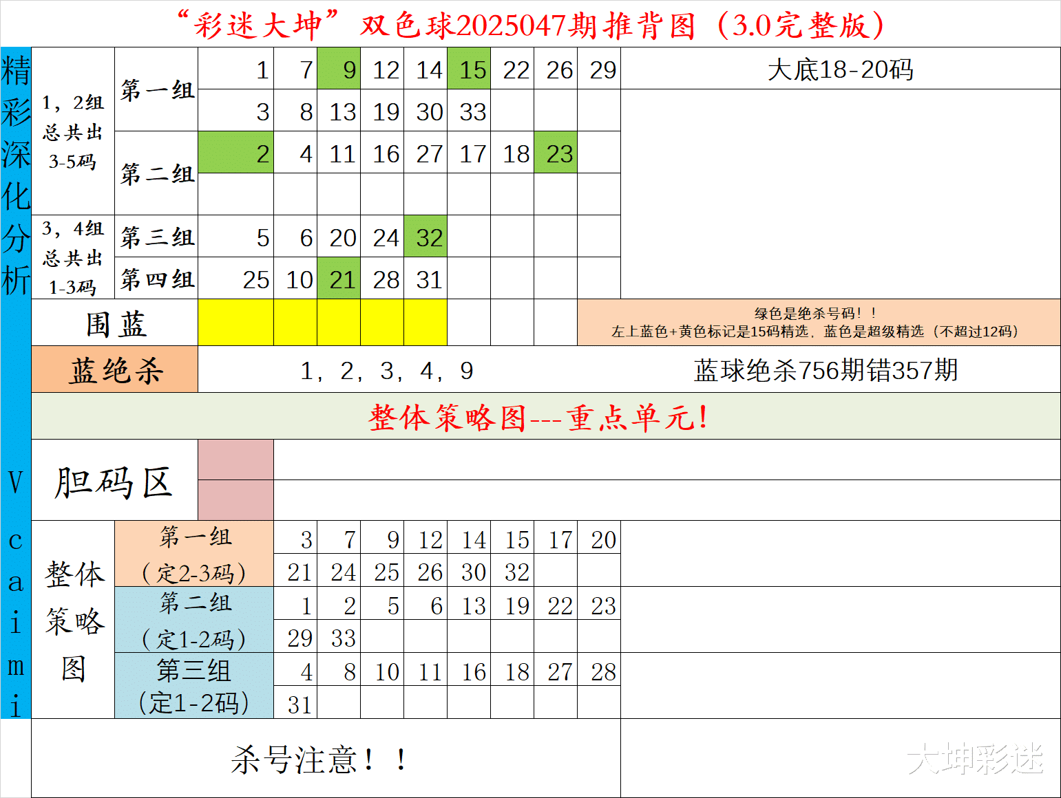 双色球047期:独创大坤走势图,策略图助你选号!