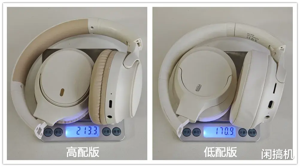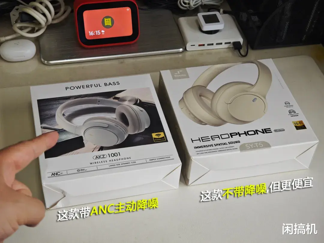 这俩外贸品牌你肯定没听过,外观和配色略有差别,包装可能会随批次变化。但最大区别是配置,左边是蓝牙5.4芯片还带ANC主动降噪功能,右边是蓝牙5.3芯片且不带降噪,重量也相差42.4克。
