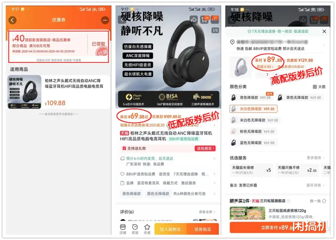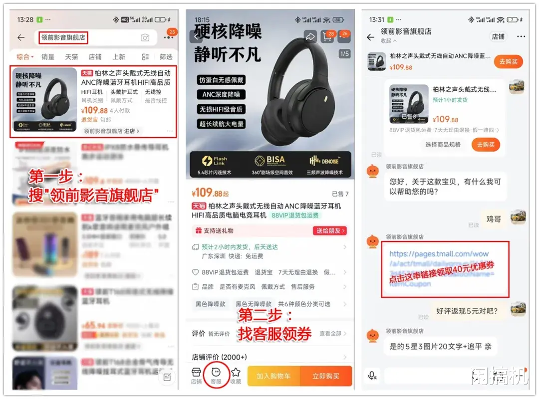 你们去天猫或淘宝搜“领前影音旗舰店”,找到唯一头戴式耳机链接,再问客服回复“鸡哥”二字领取40元专属优惠券,加上好评返现5元,最终高配版低至84.88元,低配版低至64.88元,相当于打了6折,领券限时48小时内,不买也可以囤一张。