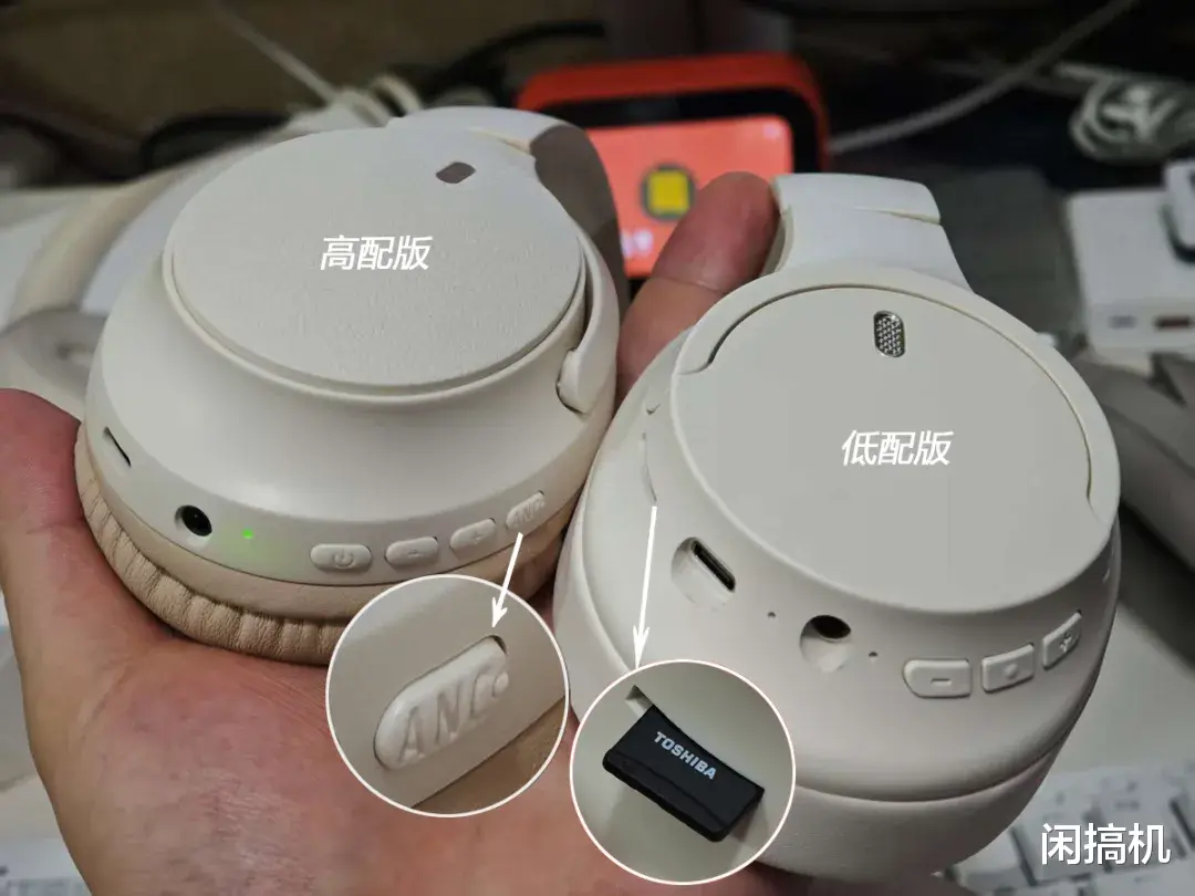 经过对比发现,低配版虽然没有降噪功能,却多出另一个功能,那就是内置TF卡槽,可以听TF卡的本地歌曲。