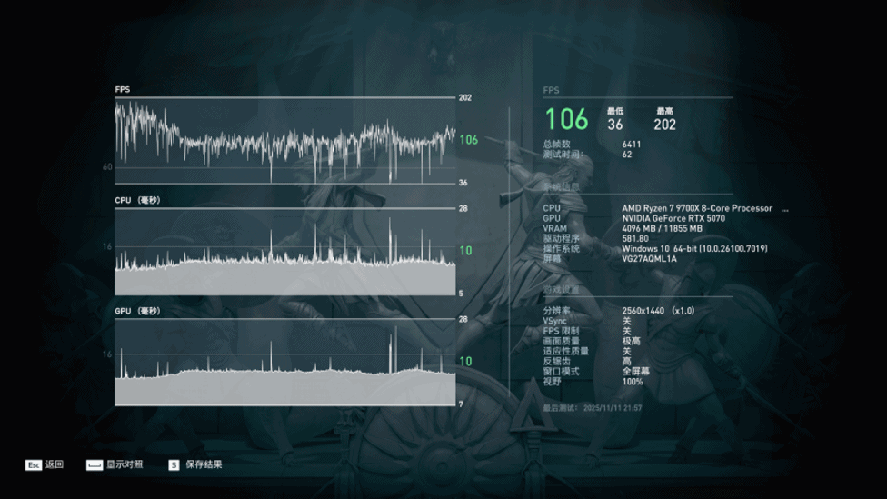 众生平等奥德赛,2K分辨率,画质极高,平均帧率106。英灵殿,2K分辨率,画质极高,平均帧率124。孤岛惊魂5,2K分辨率,画质极高,平均帧率136。孤岛惊魂6,2K分辨率,画质极高,平均帧率120。