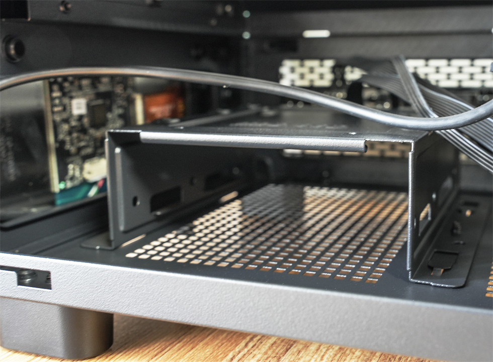 硬盘架已安装好,能够安装2×3.5英寸HDD,或1×3.5英寸HDD+1×2.5英寸硬盘。