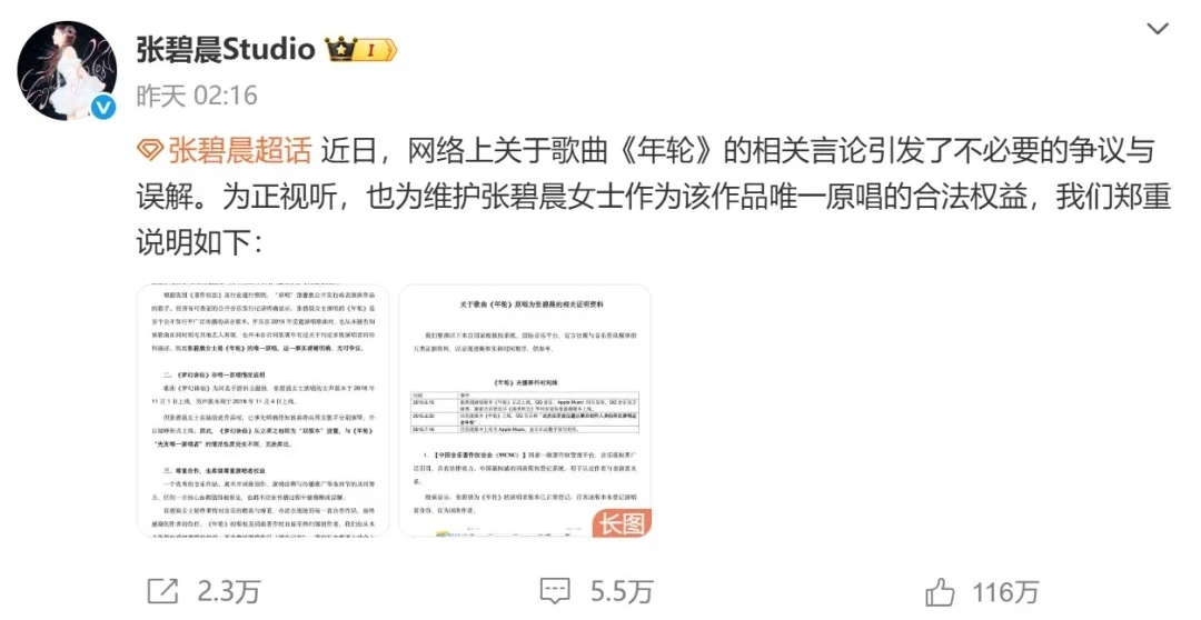 原唱定义模糊:《中华人民共和国民法典》和《中华人民共和国著作权法》均未对“原唱”一词进行明文规定。基于音乐领域的市场认知与行业惯例,歌曲首次发表的录音版本的演唱者一般被认定为原唱歌手,从这个角度看,张碧晨作为《年轮》首次发布的录音版本演唱者,可被视为原唱。但如果创作初期就规划了多个演唱版本,且词曲作者也参与演唱,那么认定“双原唱”也有一定合理性。