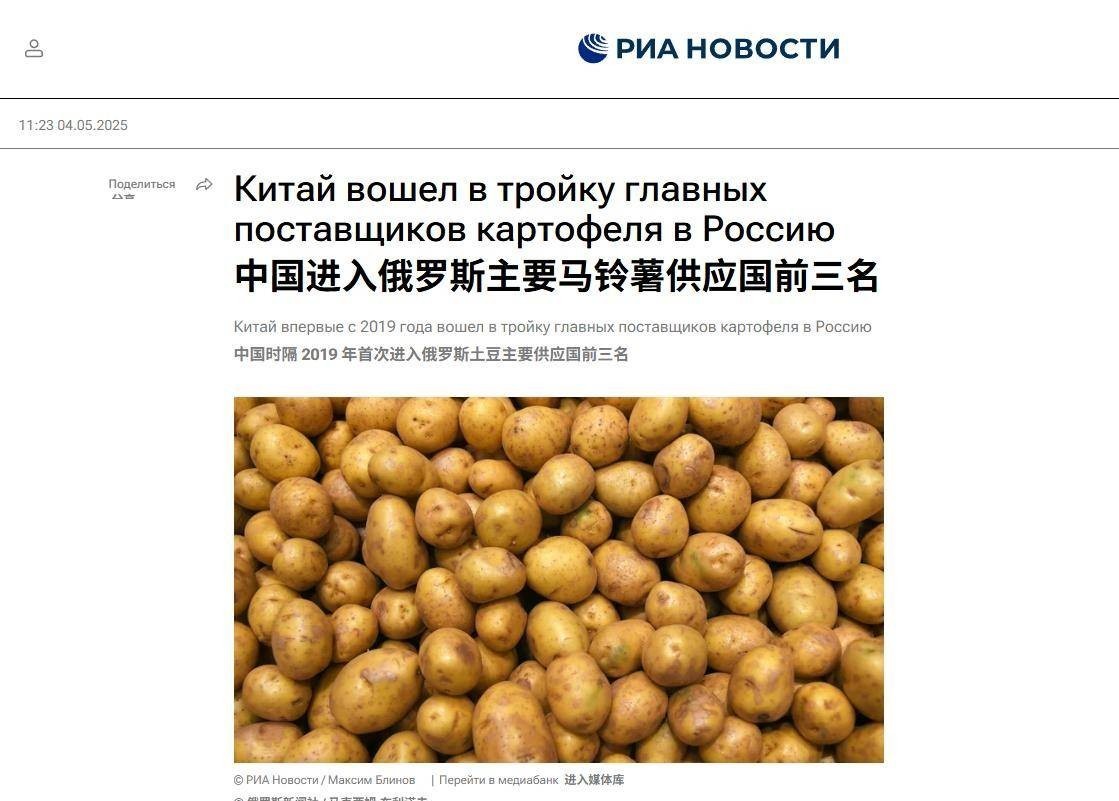 这段话是我从俄罗斯官方媒体——俄新社最近一篇报道下的网友评论中翻译整理而来。这位俄罗斯网民之所以情绪激烈,跟俄新社报道的选题和标题密切相关,标题是《2019年以来首次:中国跻身俄罗斯三大土豆进口国之列》。