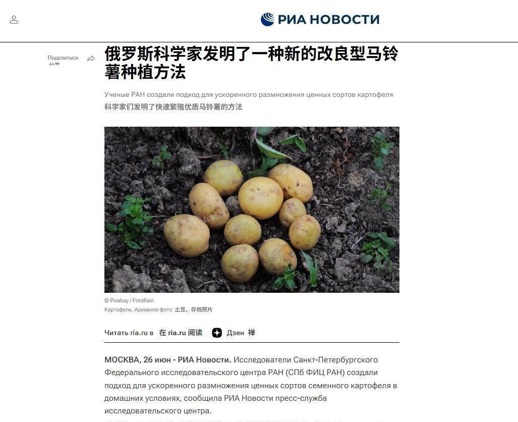 此外,俄罗斯科学院科学家们也在努力研究适合普通家庭种植的土豆改良方法,旨在帮助民众快速繁殖优质土豆,无需专业设备,短时间内即可获得丰收。