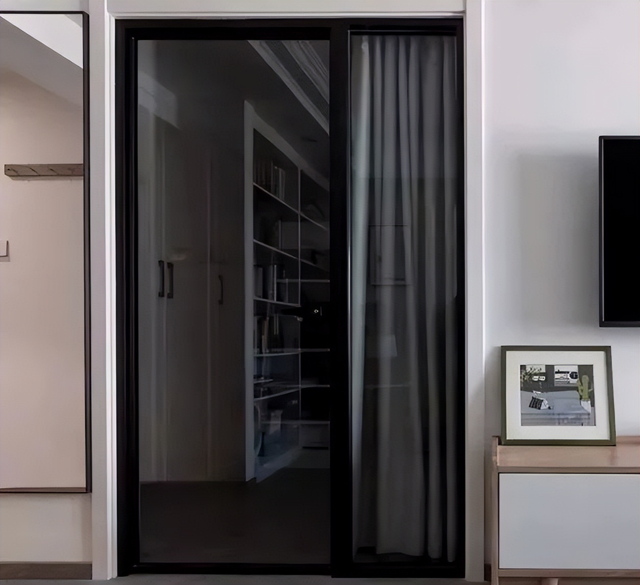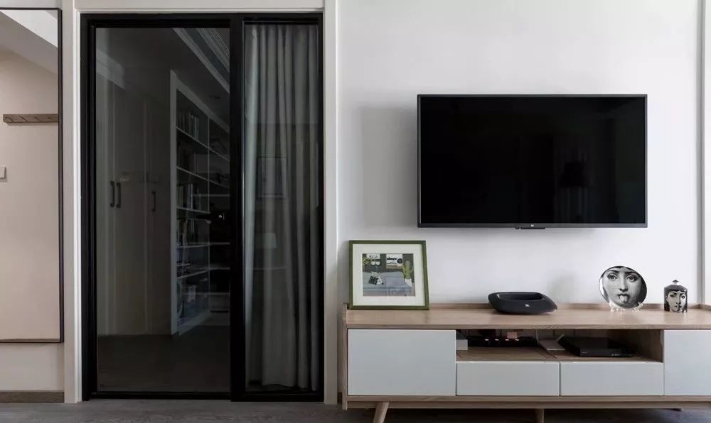 还采用了玻璃门+窗帘的形式,既增加了空间的通透感,拉上窗帘就是一个私密的空间。