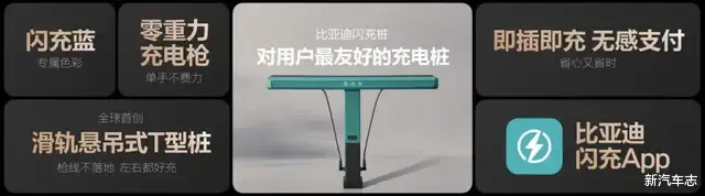 传统公共充电桩枪重、线脏、移动不灵活,充电流程还很繁琐,为了解决这些痛点,比亚迪闪充桩采用了全球首创的“滑轨悬吊式T型桩”设计,让线拉着枪,手感非常轻巧,几乎是“零重力充电枪”;并且,枪线永远保持悬空,避免缠绕更干净;还可以让用户轻松左右滑动,充电更灵活。同时,比亚迪还打通了车和桩之间的所有链路,只需通过比亚迪闪充APP简单设置,即可实现“即插即充,无感支付”,这就是对用户最友好的充电桩。
