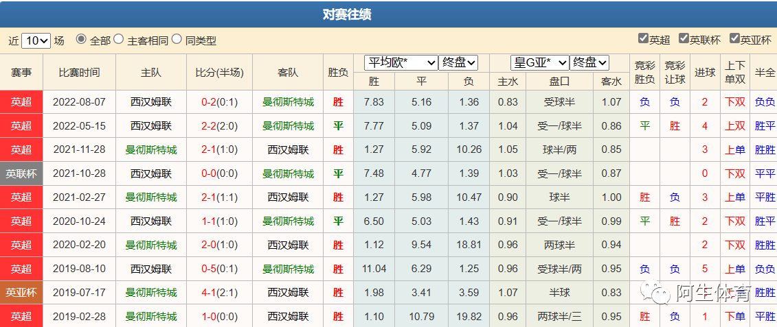 今天给大家带来一场赛事:曼城VS西汉姆联