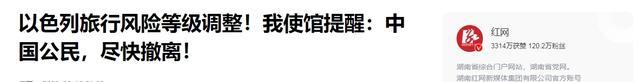 1、红网《以色列旅行风险等级调整!我使馆提醒:中国公民,尽快撤离!》