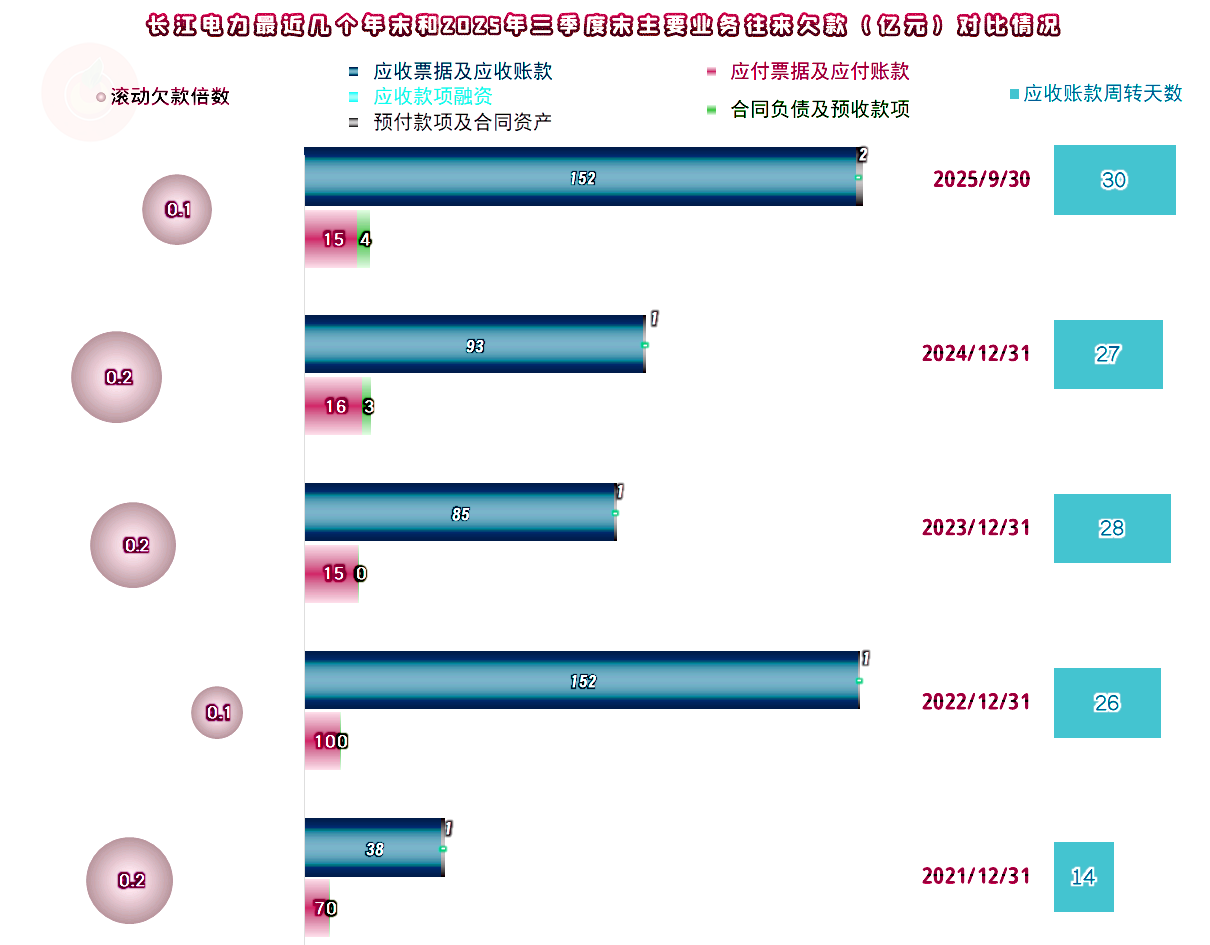 实际上,两者是有本质差异的,长江电力的年“经营活动的现金流量净额”稳定在500亿元左右,足以支付百亿规模左右的利息。其回款稳定,可以有序地安排其他经营方面的开支,除非销售方面出现系统性的大问题,否则,并不会导致这个良性循环的中断。