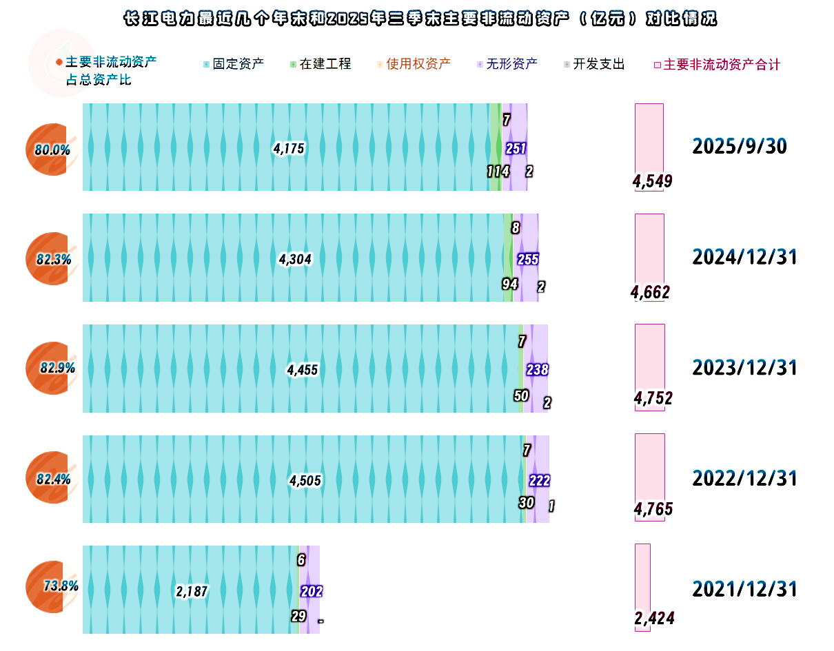 净利润同比增长5.1%,再次创下盈利新高。在2020年突破250亿元之后,回调了两年,2023年以来继续增长,2025年快达到350亿元的规模了。营收增长带来的盈利增长是主要原因,乌东德水电站和白鹤滩水电站都是2021年才投产的,经营正常后,就应该有前面看到的这些增长。