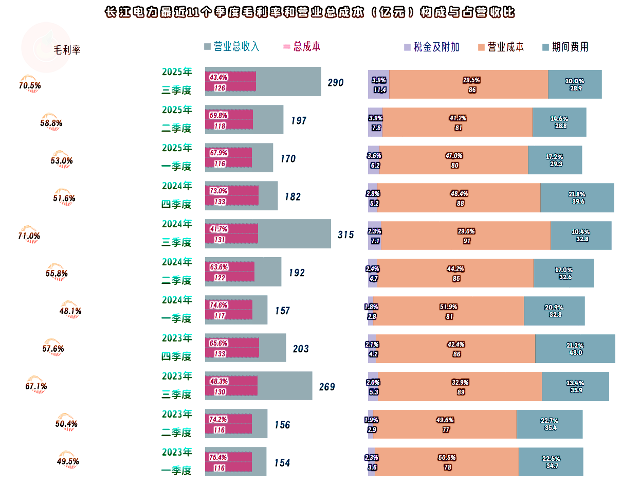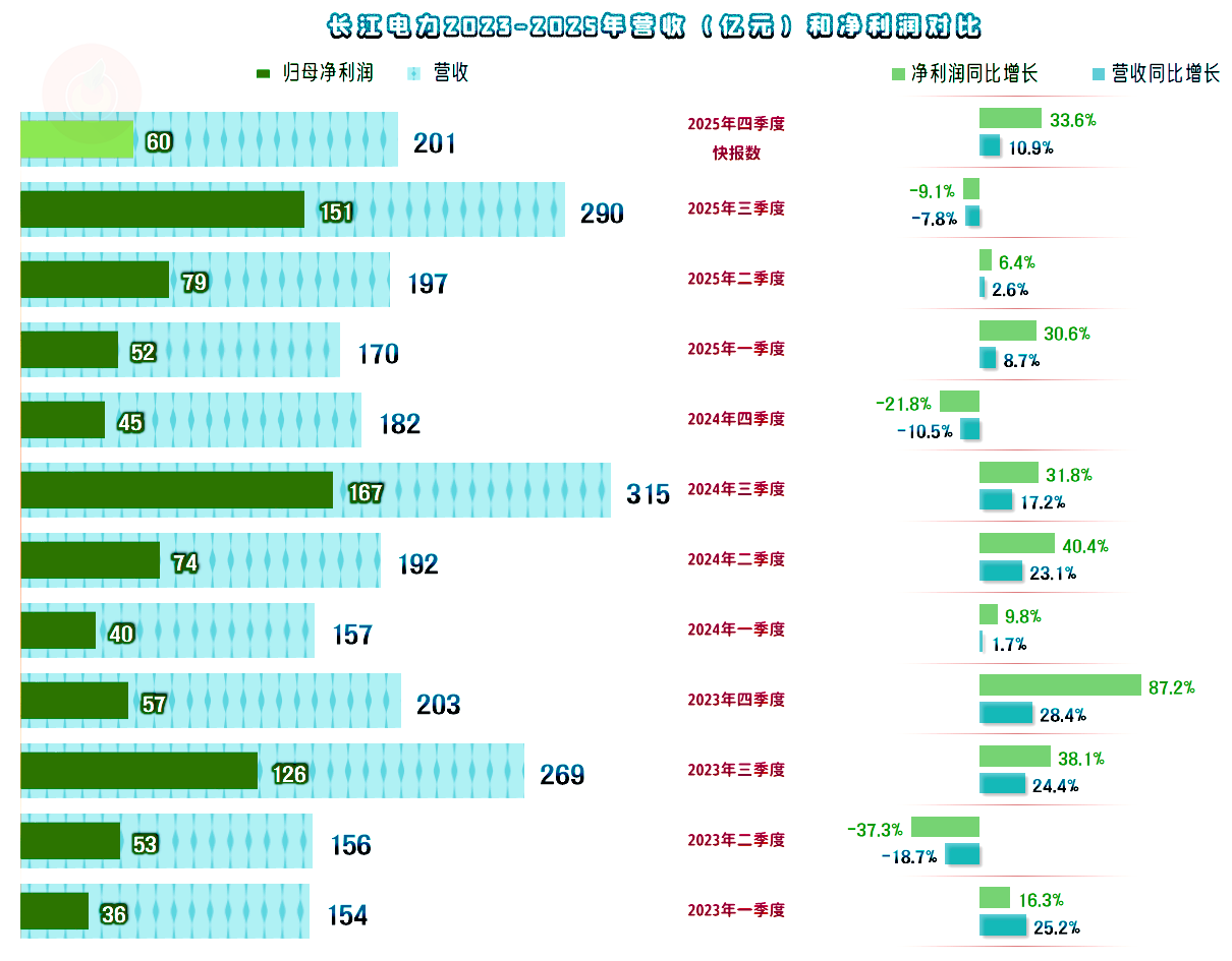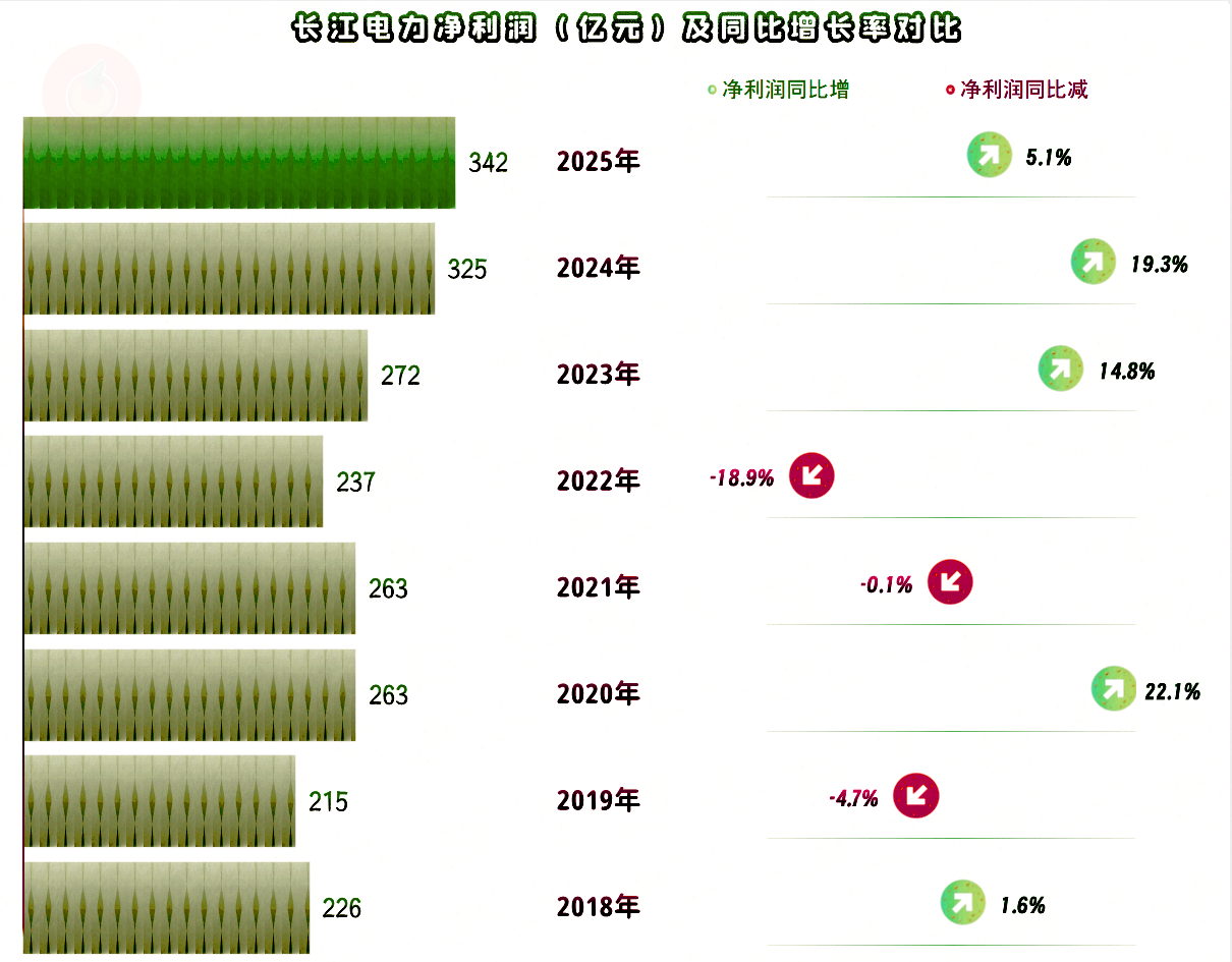手握国内,甚至是全球最大的几座水电站,长江电力运营得还不错,前几年新并入两座大电站后的业绩出现了波动,2025年已经接近并入前的运营效率和盈利水平了。
