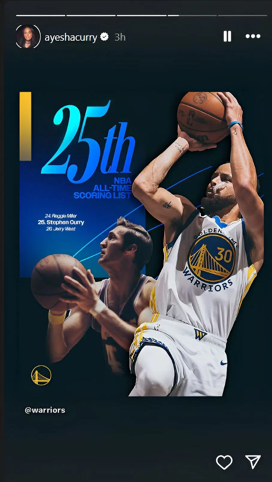 而作为库里的头号粉丝,阿耶莎也在 社交媒体连续晒出勇士队的赛场照片,用行动为丈夫的超神表现庆祝!