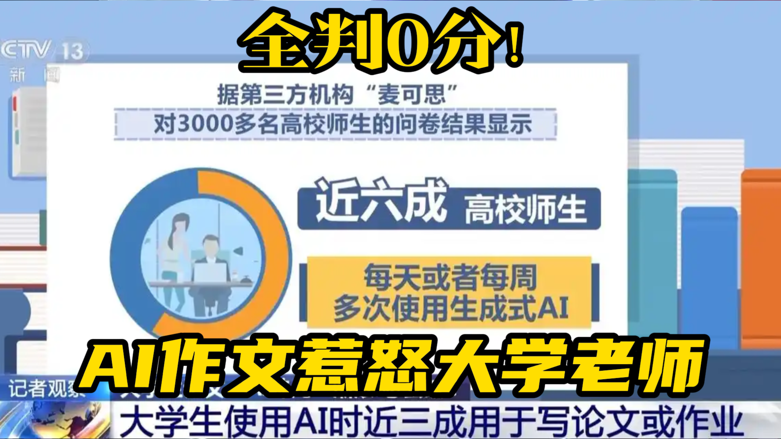 根据第三方机构麦可思调查,近六成高校师生每天或每周多次使用生成式AI,其中近三成大学生主要将AI用于论文和作业。浙江大学教育学院对8000多名大学生的调研显示,不当使用AI的比例相当高。
