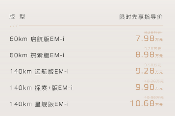 吉利银河 L6 EM-i 此次推出的限时先享指导价仅 7.98 万元起,涵盖 5 款不同配置车型,为不同预算和需求的消费者提供了多样化的选择。同时,其上市权益诚意满满,极具吸引力。