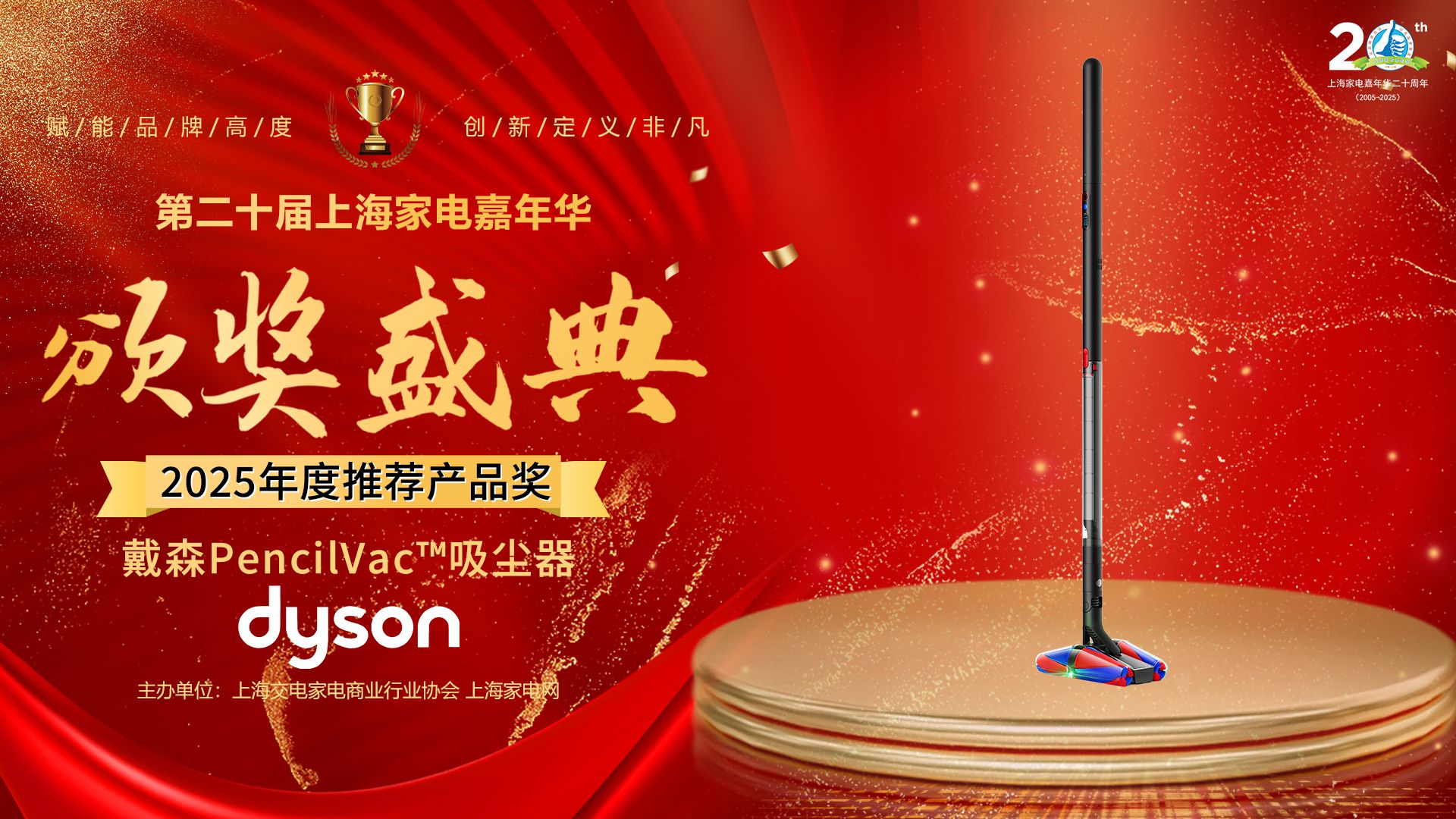 在2025家电嘉年华上海家电网卓越产品颁奖盛典上,戴森PencilVac铅笔吸尘器凭借纤巧机身设计、四锥万向吸头、无边盖设计、Hyperdymium™吸尘马达、直线式分尘系统、空气压缩式集尘技术六大核心亮点,荣获2025年度推荐产品奖。这一殊荣是行业对其在智能创新、高效清洁、健康防护等方面深耕细作的高度认可,彰显了其在高端吸尘器领域的领先地位。