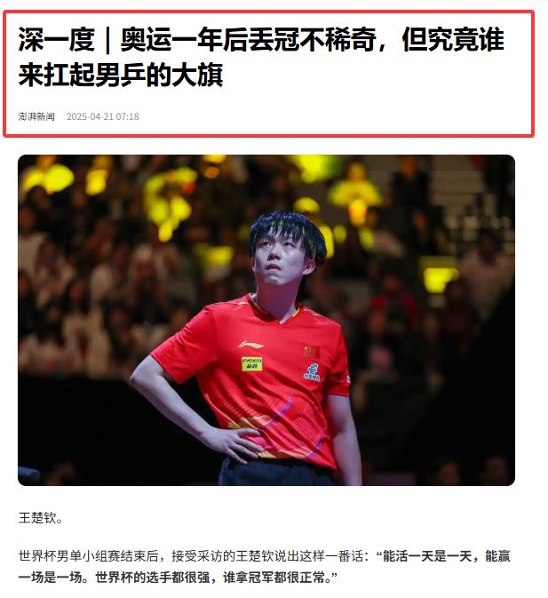 王皓赛前的期待和王楚钦的清醒,都将是国乒男队不断强大的优点所在。