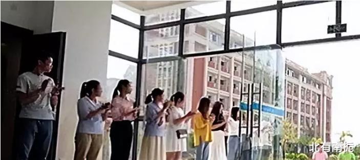 学校里的学生们分列两队,手举鲜花,热烈欢迎章育晨的到访,掌声此起彼伏,走在中间的章育晨心潮澎湃。