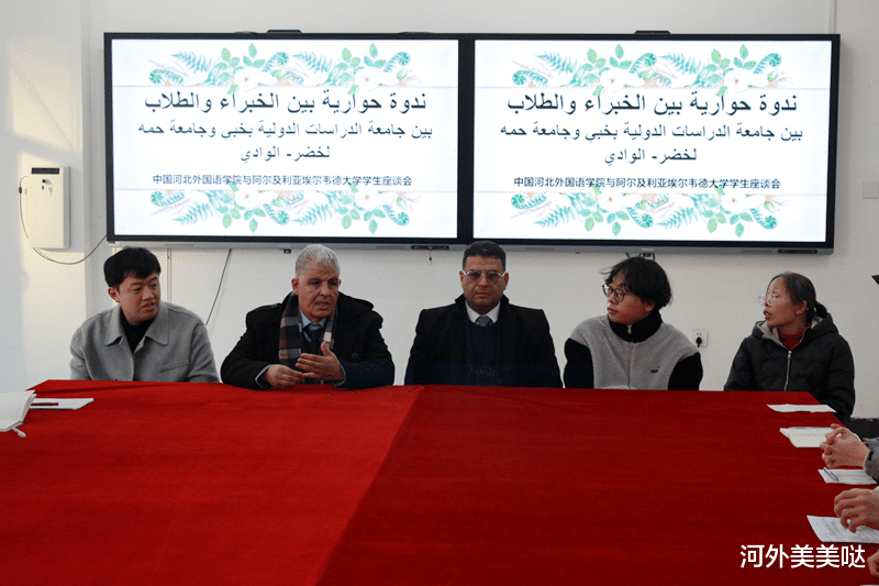 下午,埃尔韦德大学代表团与河北外国语学院欧亚语言学院阿语专业师生展开座谈,围绕学科建设、跨文化学习等议题进行深入对话。