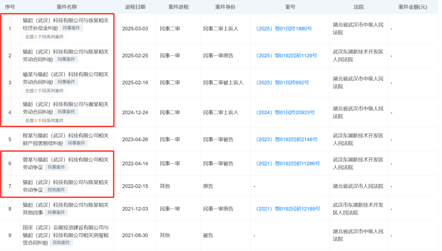 而在最近一年多,武汉公司曾多次因劳动争议、劳动合同纠纷等被起诉。