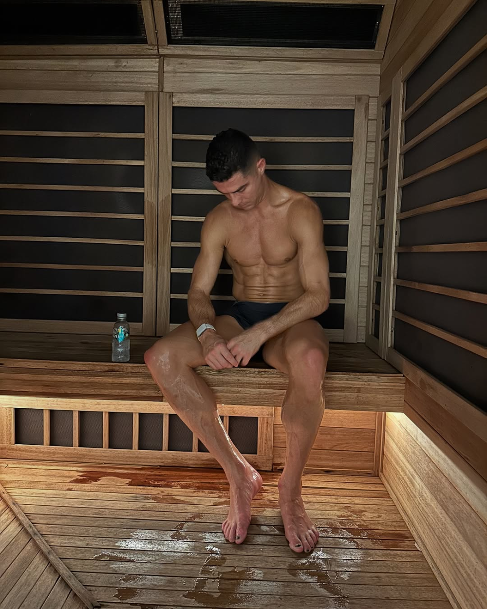 而在不进行大强度锻炼的日子里,他会专注于修复自己的肌肉,做冰水浴、蒸桑拿等,此外他还有不少帮助恢复的高科技仪器。