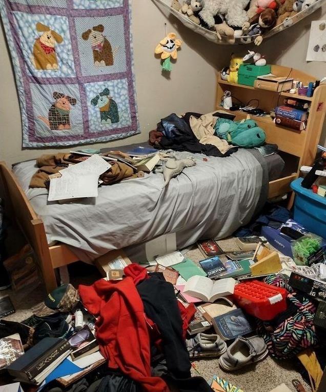 第十七个:这就是我那上高三的女儿的房间,她从来都不整理,我帮她整理过几次,反而惹得她不高兴,说这个不见了,那个找不到了...现在,我已经不再帮她收拾了