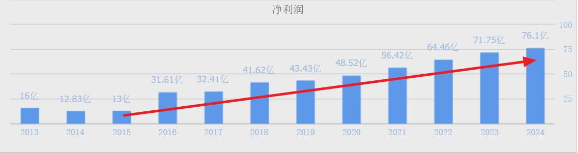 2019年至2024年,净利润连续六年增长,哪怕是熊市的22、23年也不例外。