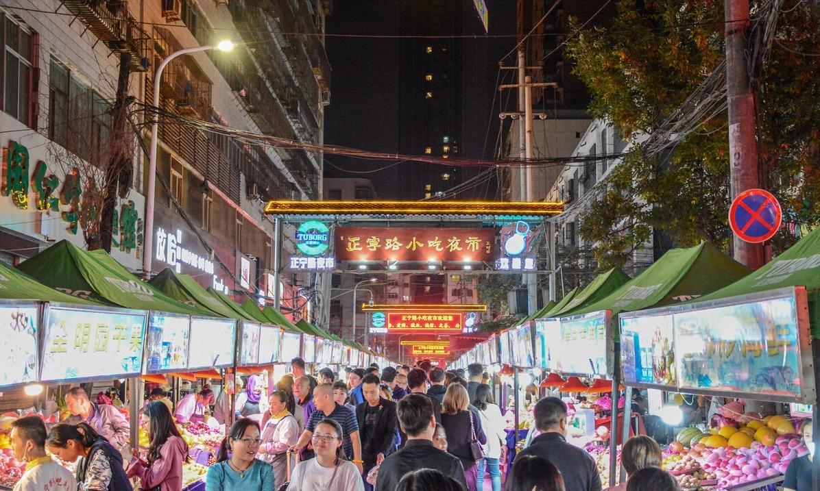 夜晚的正宁路夜市则是另一番热闹景象,各种特色小吃和地道风味都在这里被展现得淋漓尽致。