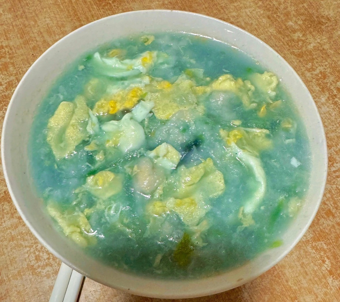 鸡蛋是好鸡蛋,就是不知道,这碗墨绿色的蛋汤,是怎么熬制出来的?难不成是去哈利波特中的魔法学院进修了?