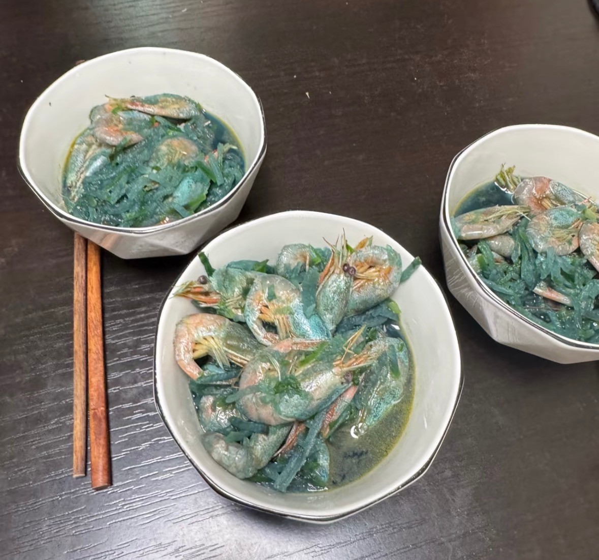 万绿丛中一抹粉。知道的,是萝卜秧子炒虾,不知道,还以为虾中了毒。