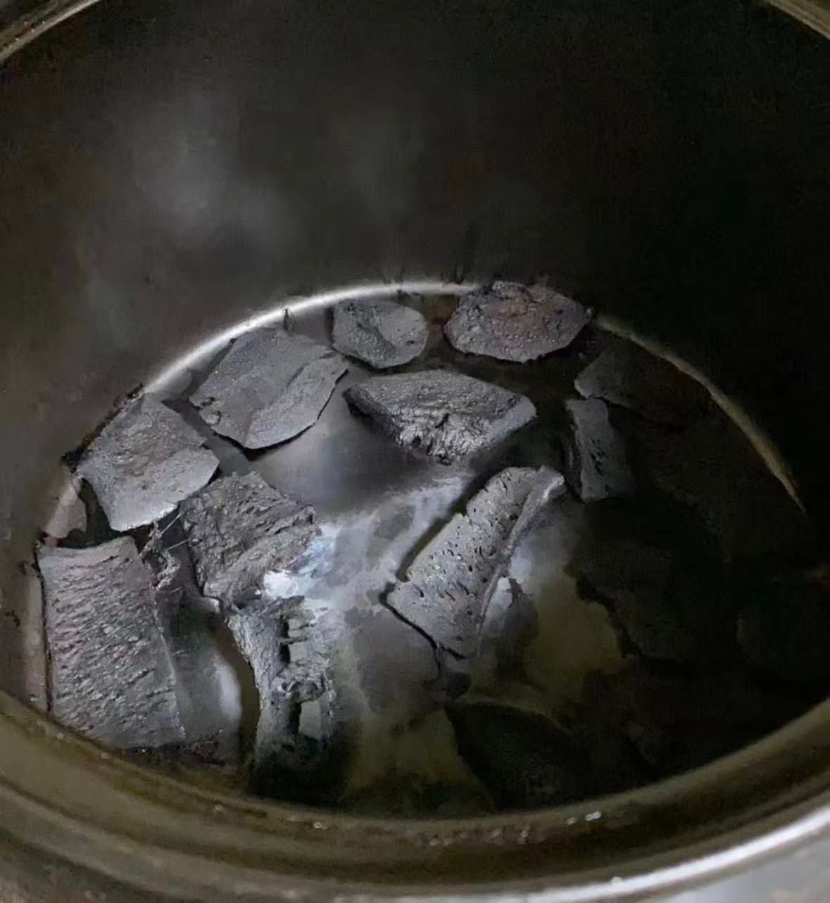 圆圆的盘子里,黑糊糊一片。咱也不知道是啥。不过,刚学炒菜嘛,可以理解。