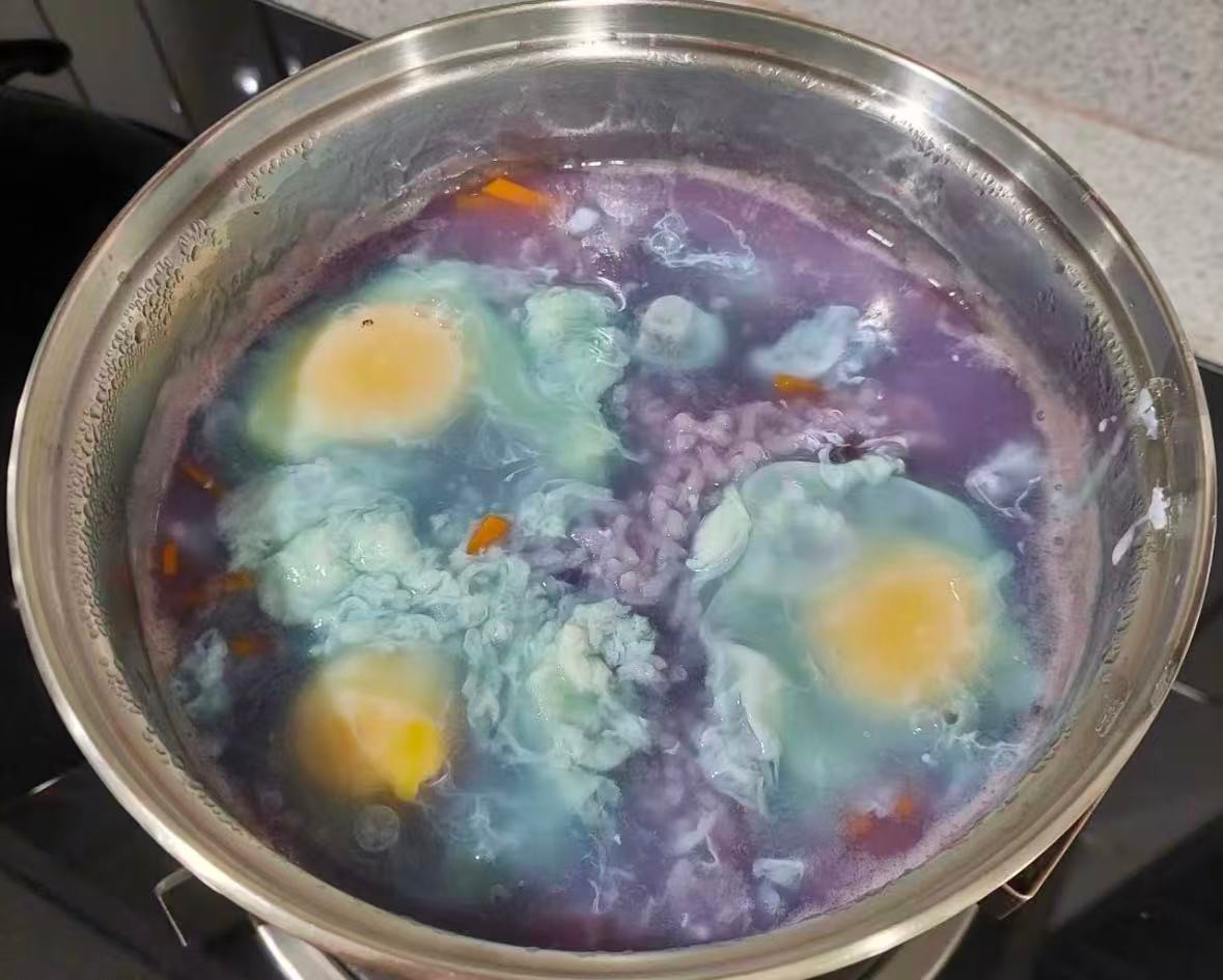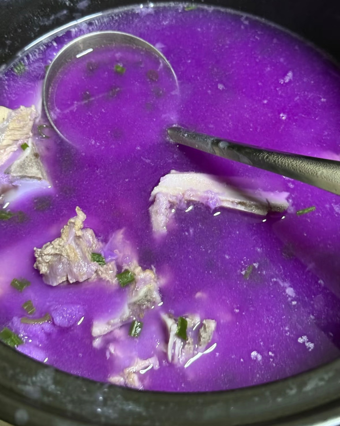 紫色的汤汁里,漂浮着一团团氤氲的蓝色。蓝色中间,又包裹着一团梦幻黄。