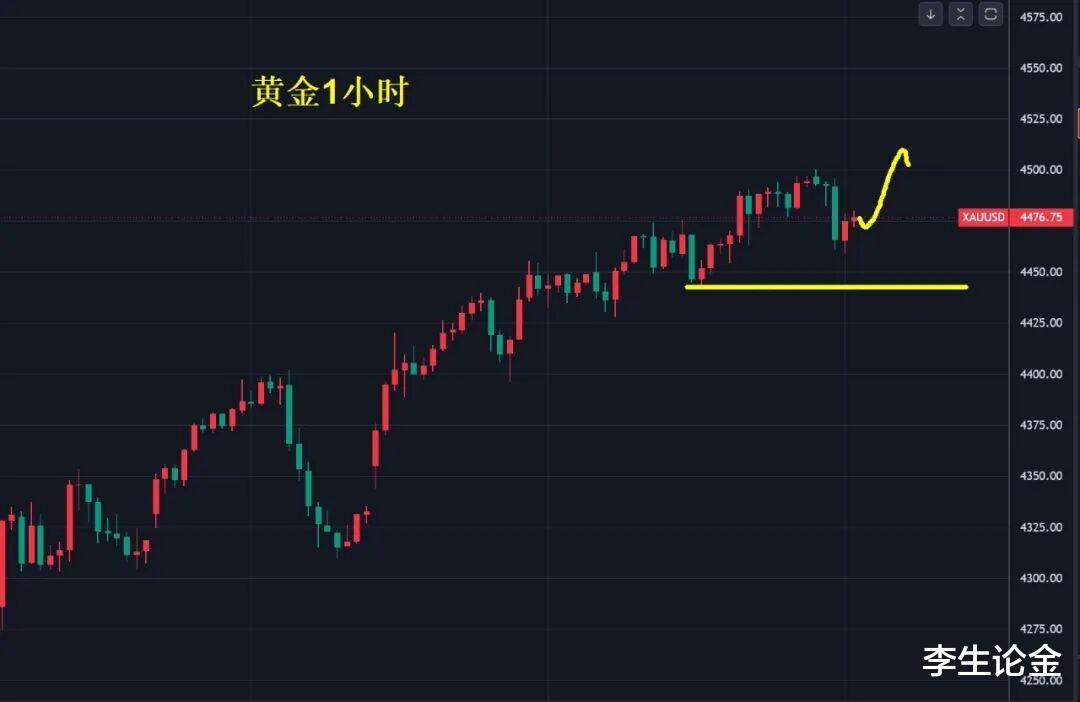 一大早瑞士就按大哥的指挥冻结了委内瑞拉出口的113吨黄金,价值52亿美元。关于这个事我没有观点,也不站队,但这个事件告诉我们一个道理:唯有自身强大。过去十几年老美日子过的滋润,欧盟小弟跟着也吃到了肉,各种援助和支持,“借新还旧”的游戏越玩越溜,债务规模年年水涨船高,财政赤字年年扩大。“债主们”刚开始以为瘦死的骆驼比马大,选择“利息再投资”,再多借点钱给大哥,大哥用借到的钱还利息,游戏还能继续。“击鼓传花”玩成了“传zha弹”,37万亿美元的债务利息都还不起了,有的债主不愿意了,万一哪天大哥不讲信用,那自己岂不是跟着遭殃。这种共识慢慢传开后,大哥也慌了,开始收紧援助,反向开始收保护费,不听话的就贸易打击,恐吓。马杜罗被带走就是给小弟们一个警示,我说你有问题那肯定有,狡辩就是对我的不尊重,以前是以前,现在是现在。为什么这几年各国央行都在买黄金,是为了炒黄金吗?根本不是,原来手里拿的全是美债,现在买黄金来多元化配置降低风险,万一哪天真还不上开始扯皮了,自己手里还有黄金撑过寒冬。2026年黄金还涨不涨?不用靠猜,请问美债37万亿怎么还?用什么还?老美好日子过惯了,苦日子过不了多久,那没钱又不想过苦日子怎么办?一个字:抢。由俭到奢易,由奢到俭难,美债危机的共识越来越强烈,一种是央行加大配置比例,另一种解决老美苦日子只有“印钱”,降息就是其中一种。说一下今天黄金的行情:上周黄金怎么跌下去这次怎么涨上来,单日暴跌之后没有延续, 而是在4300美元以下形成W底,趁着地缘风险一步一个台阶回到4500美元,市场看多情绪依旧很高。另外,今天早间回调后这种行情还是要多,空属于偶尔“偷鸡”,有机会了搞一下,没有就不强求,只有欧盘破亚盘低点的时候,才有机会空一次,另一种是早盘急涨,这两个都是多转空强烈信号。