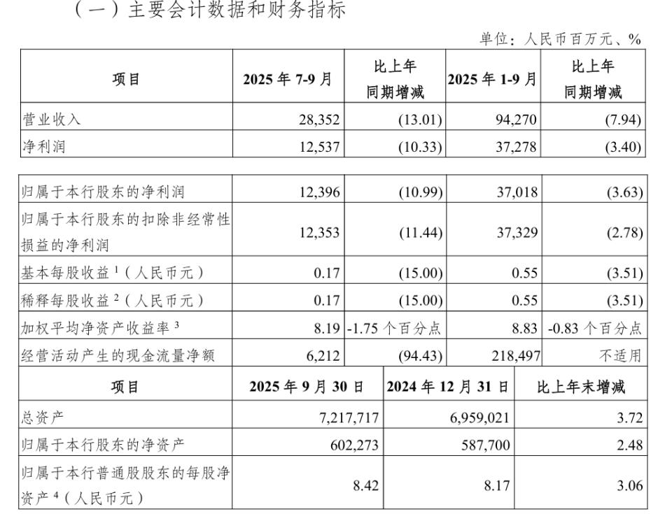 其次,就是中间业务“独木难支”。手续费及佣金净收入为155.02亿元,同比增长2.18%,增速较上半年的4.30%明显放缓。其中,理财、托管、投行三大引擎贡献度下降,代理保险收入因“报行合一”政策挤压缩水。虽然投资收益大增29.39%至125.69亿元,但第三季度单季仅21.92亿元,增速也放缓至13.32%,占营收比重由上半年的15.74%骤降至7.73%,可持续性存疑。