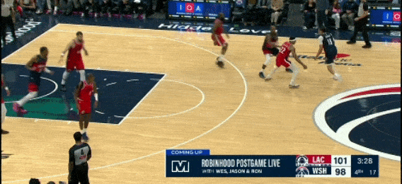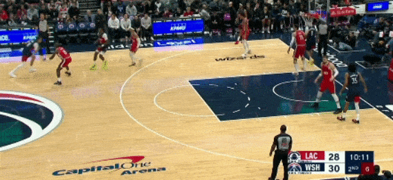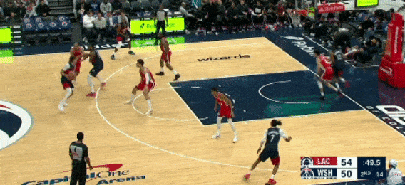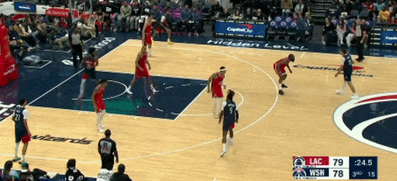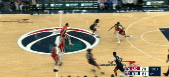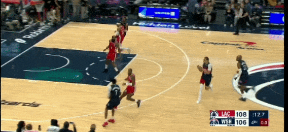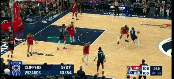 第二节,乔治打最后两次进攻,包括一个半场超远三分