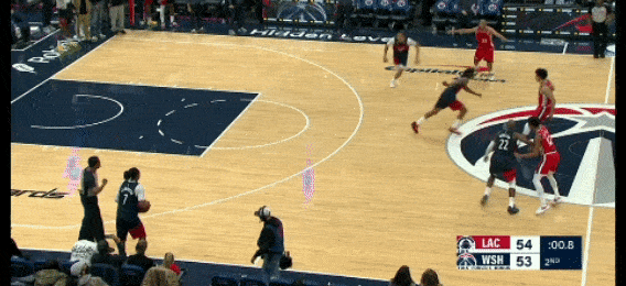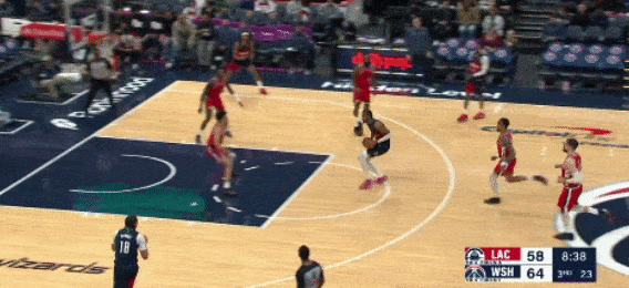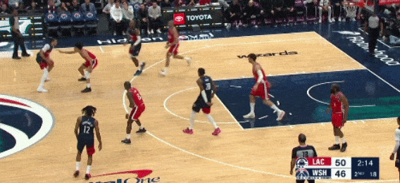 乔治速度很快,步伐也大,突破时一加速就摆脱了哈登,面对科林斯的护框,在空中对抗后造成犯规,