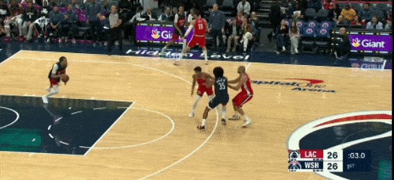 第一节,乔治打最后两次进攻,包括一个半场超远三分