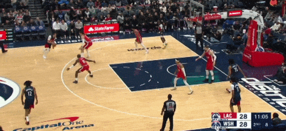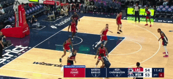 虽然奇才阵中有很多首轮新秀,包括乐透秀,但是就本场比赛的场面看,萨尔、卡林顿、约翰逊、莱利,这些球员的权限都不如乔治。