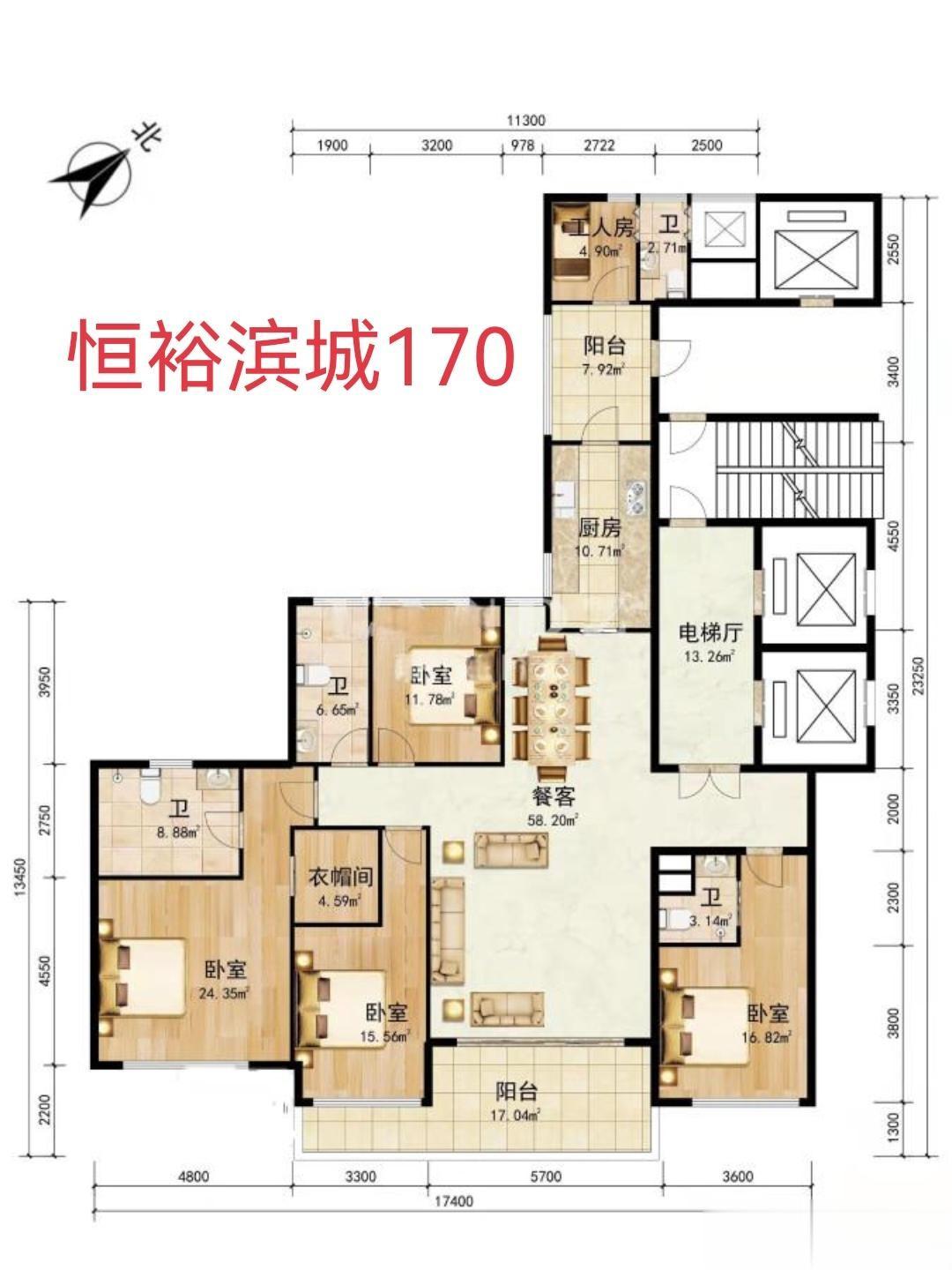 虽然使用面积可能更大,但户型结构应该是没有恒裕170平的好,东南向一层两户的板楼总会好过一层四户东西向的户型设计,何况澐玺在阳台和外观上有限制条件。