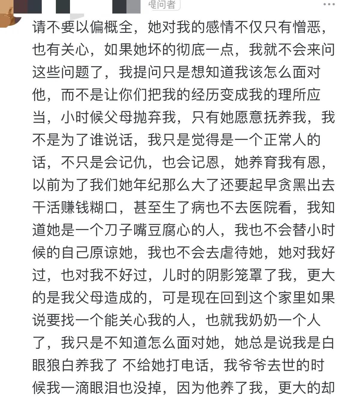 小时候的那些伤害让我时常梦见自己被追打的场景,而现在奶奶的照顾又让我无法硬起心肠去拒绝她。