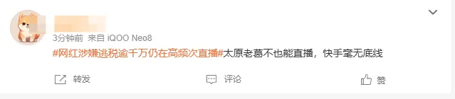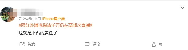 也有网友表示:网红涉嫌逃税逾千万仍在高频次直播,这就是平台的责任了 ……