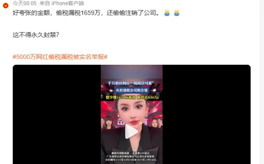 比如有网友表示:好夸张的金额,偷税漏税1659万,这不得永久封禁?