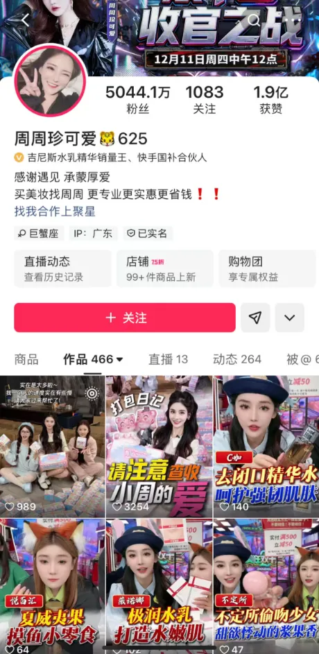 近日,有网友举报称,在快手坐拥五千多万粉的顶流网红“周周珍可爱”(本名:周珍)名下控股企业涉嫌逃税,在今年9月份,已被国家税务总局佛山市税务局查处,涉及金额逾1600万元。但其账号至今仍然在正常直播。