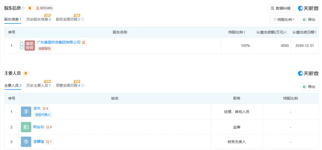 值得注意的是,周珍担任广东嘉星投资集团有限公司董事,持股99%,也就是说,依然是东嘉星文化传媒有限公司公司实际控制人。