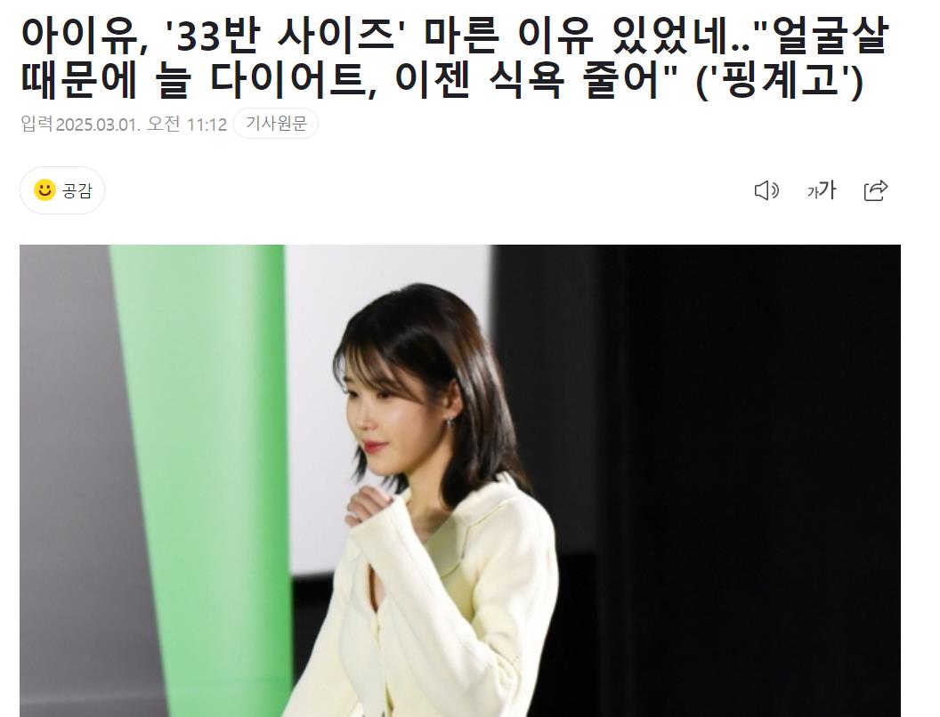 总之,IU的“脸胖体质”和减肥经历,真的让人又心疼又佩服。她的自律和努力,也让她成为了无数粉丝心中的榜样。那么,对于韩国知名女星IU透露,“脸胖体质”常年控制饮食,“感觉胃变小了”,大家怎么看呢?快来评论区和小娱聊聊吧!别忘了点赞关注,咱们下期再见~